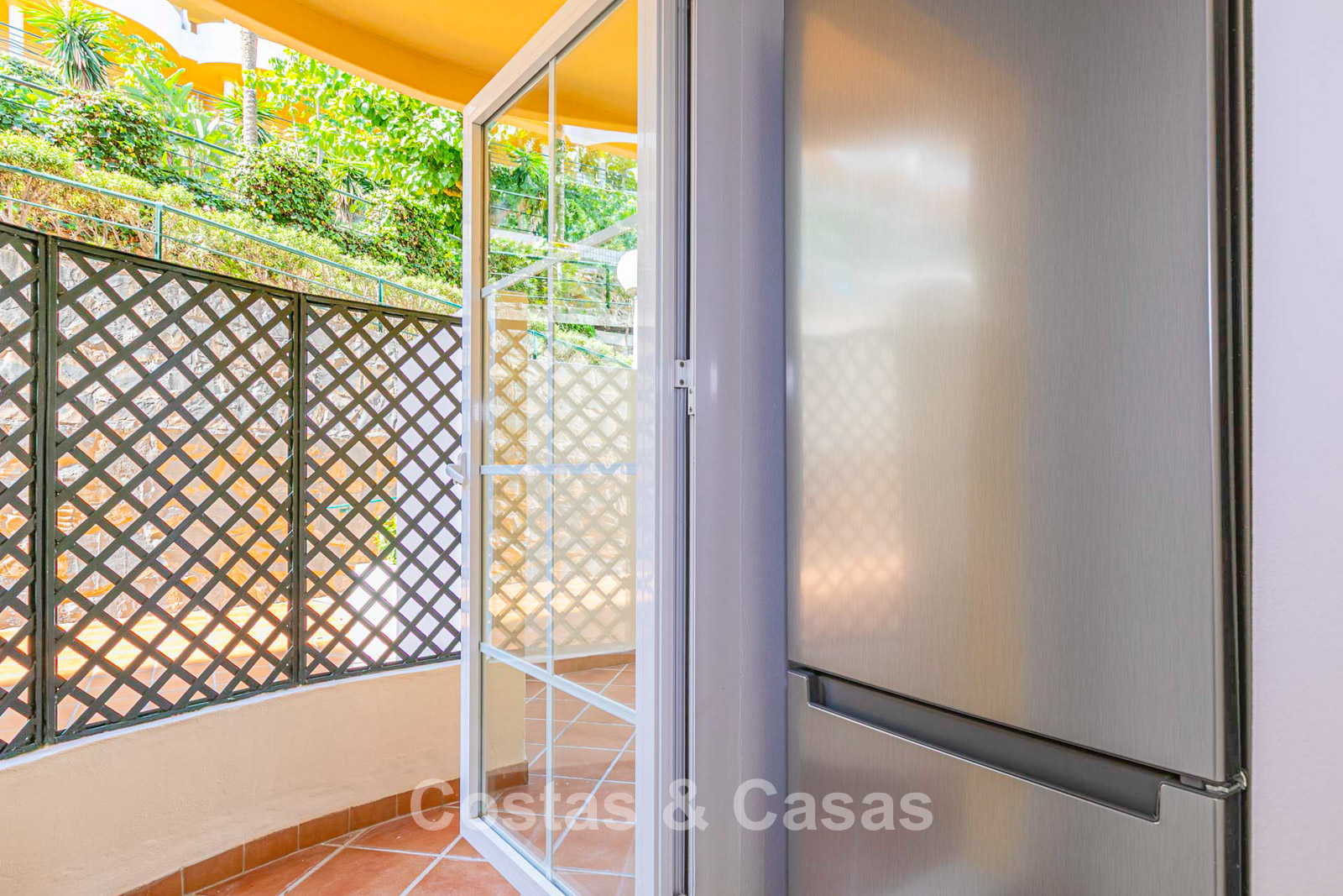 Prime location in one of the most sought-after communities of Nueva Andalucia, where everything is within easy reach. Just a few minutes’ walk away you’ll find a wide range of amenities, including cosy cafés and trendy restaurants such as La Sala, several supermarkets, a lively weekly market and a commercial centre. The renowned marina of always-vibrant Puerto Banus is also within walking distance, as well as the sandy beaches of the coast. Several well-known beach and pool clubs are located nearby. For families and international residents, the location is ideal: top schools, the Golden Mile, Marbella town centre and no fewer than five prestigious golf courses are all just a short drive away. Opposite the complex, a 1,400-metre walkway and cycle path will be officially opened in spring 2026. The picturesque path meanders along a small river towards Puerto Banus, offering an alternative route. Residents enjoy easy access to the community’s main entrance and two swimming pools surrounded by landscaped greenery. The complex itself will soon undergo a thorough renovation, which will increase its value. Given its location, it has been a highly sought-after holiday rental destination for 25 years and offers an excellent rental return. A concierge-handyman is available.