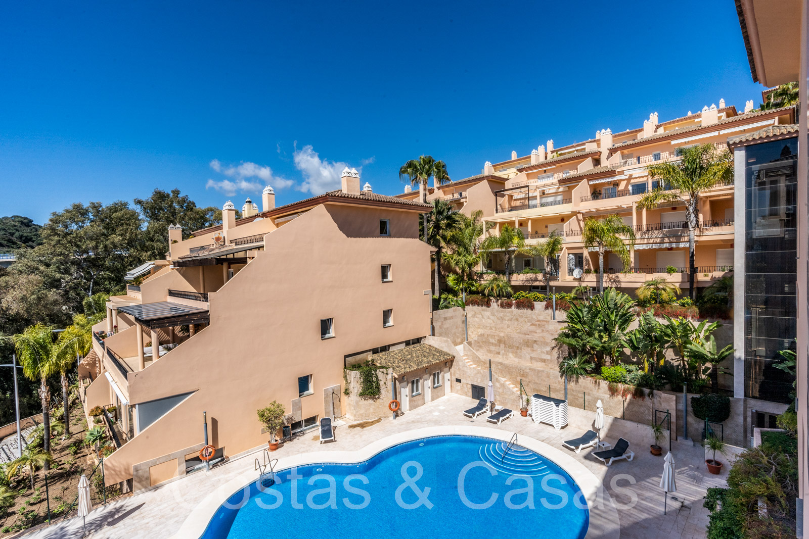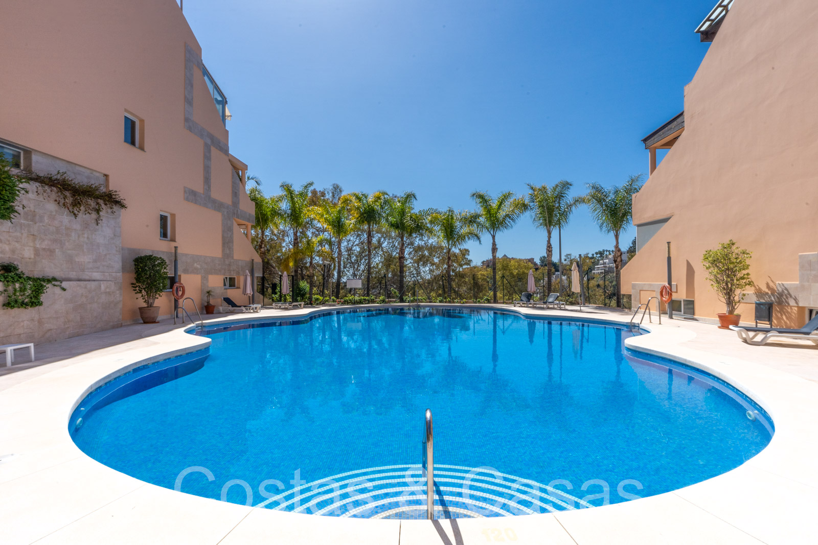 Exclusive location in a secure complex, with permanent surveillance and CCTV. The complex is surrounded by several top golf courses including Aloha golf club, Los Naranjos Golf, Las Brisas Club and Magna Golf. All amenities such as restaurants, bars, supermarkets, international schools and banks can be reached within a 5-minute drive. The centre of Marbella is a 15-minute drive away. The community has a communal swimming pool, surrounded by a solarium with sun loungers. 2 tropical gardens open onto an idyllic old lake, where various water sports are practiced, including canoeing.