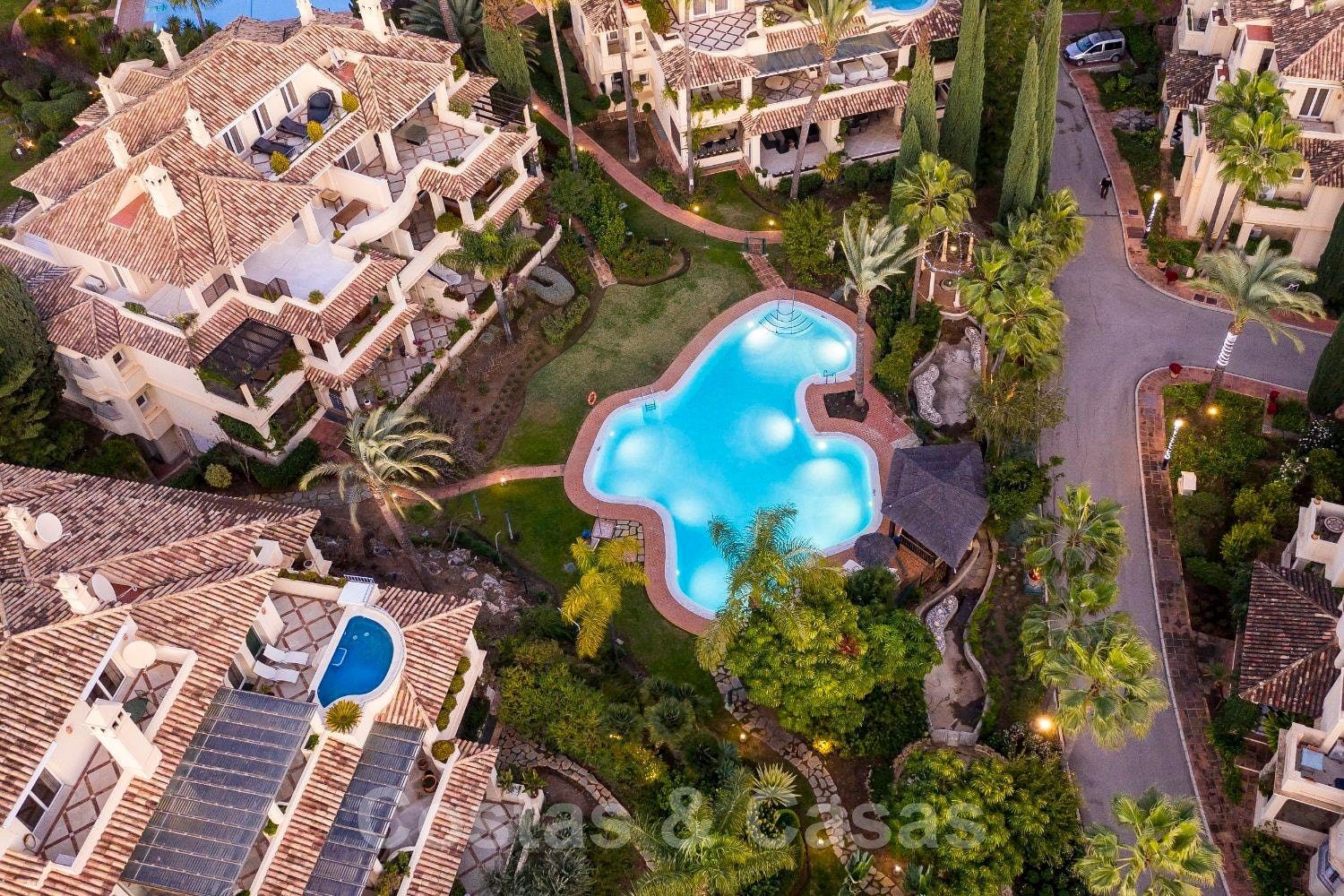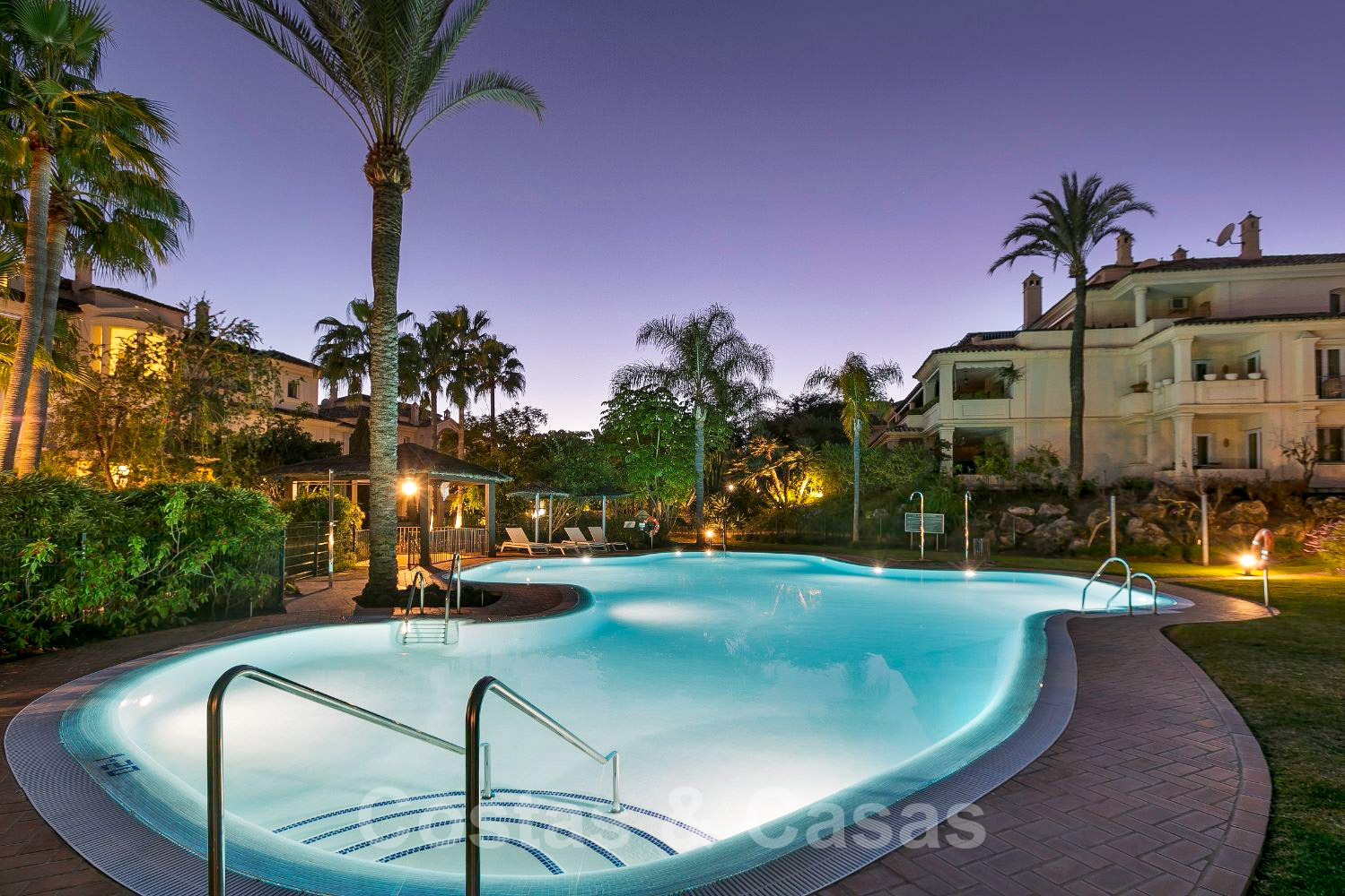 Luxury complex with heated pool, lovely gardens and water features