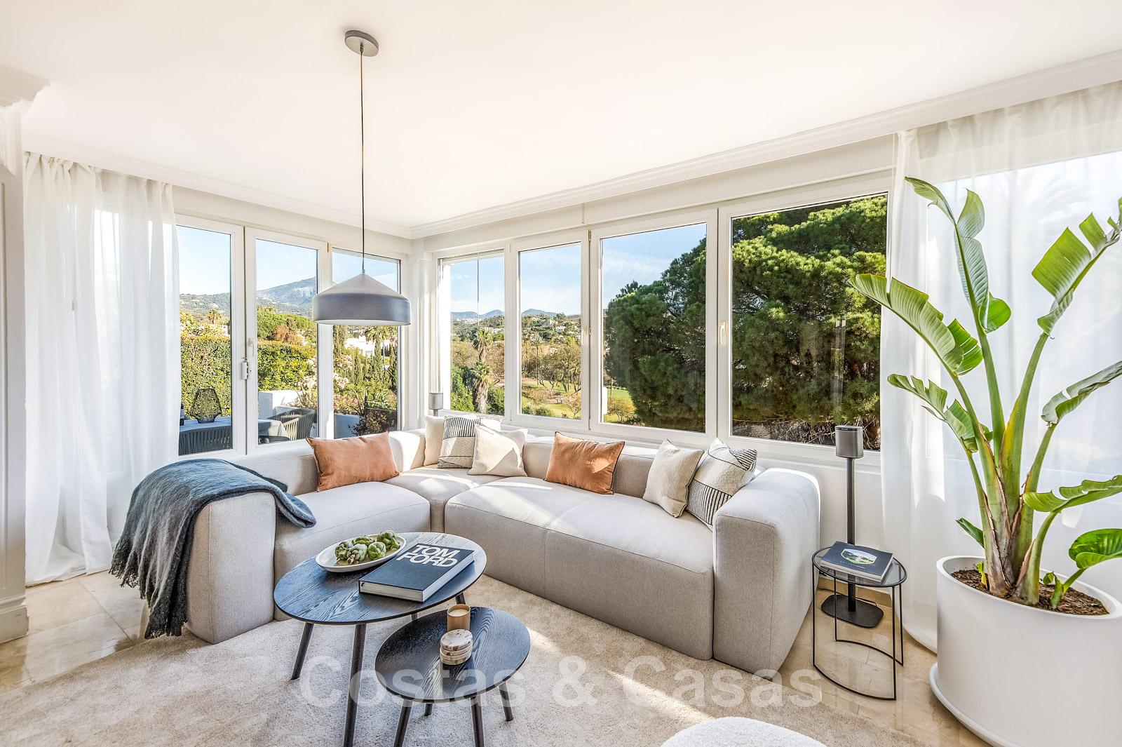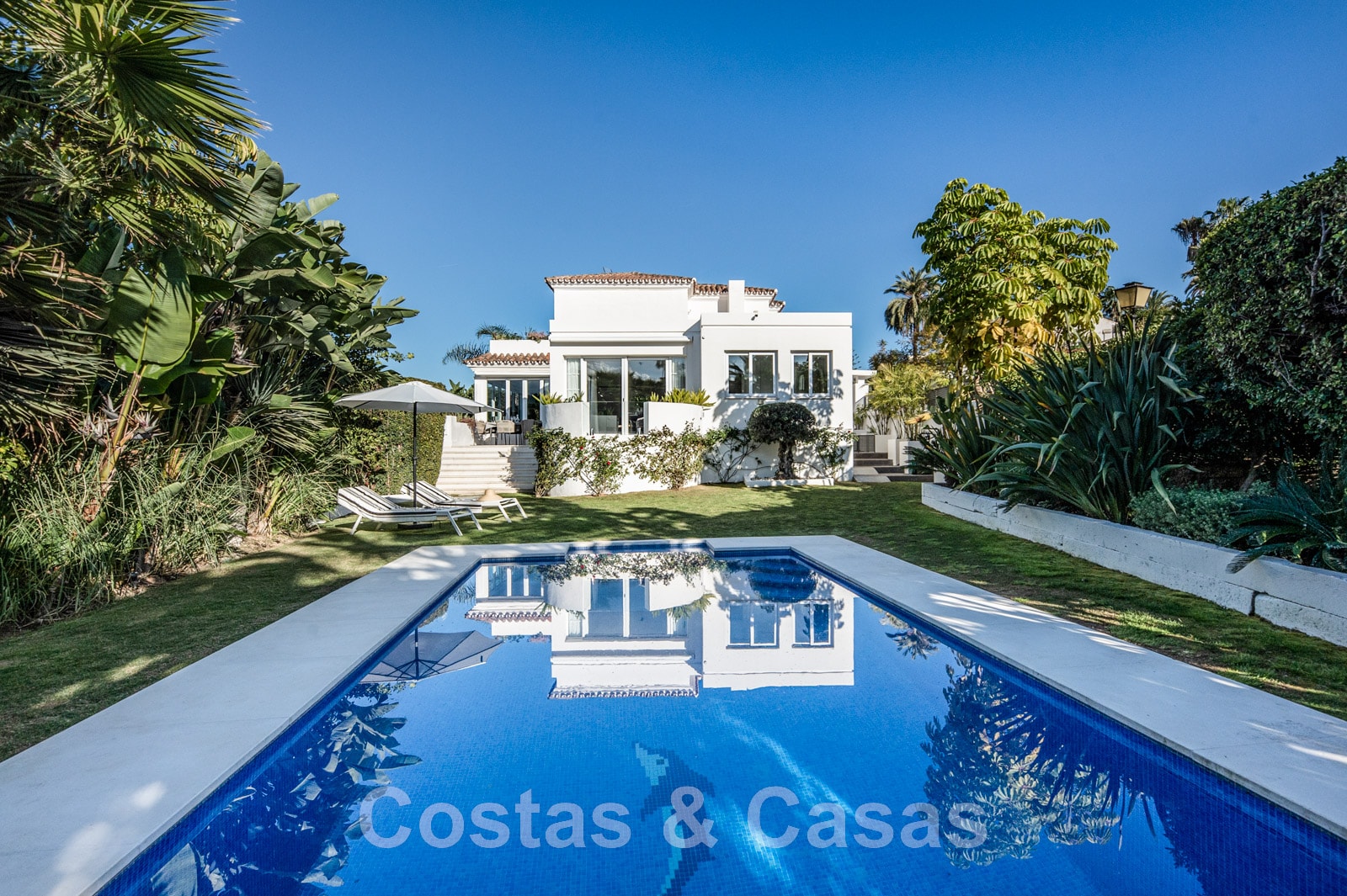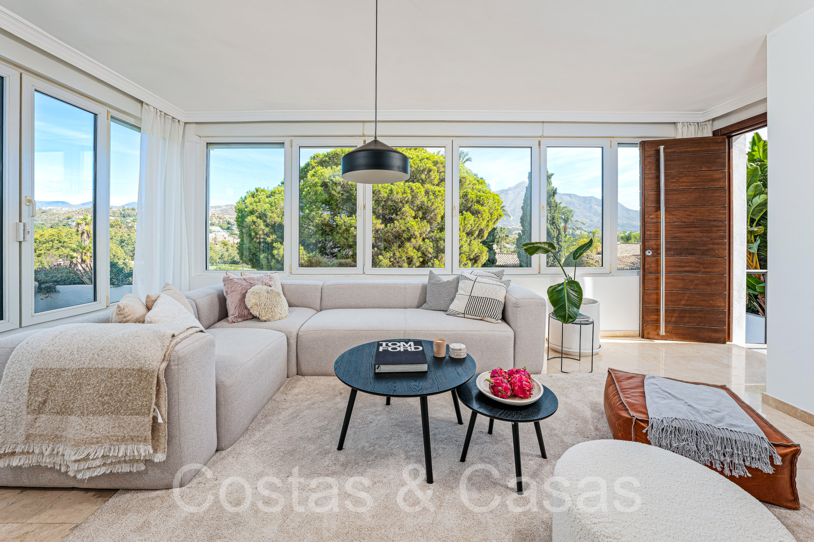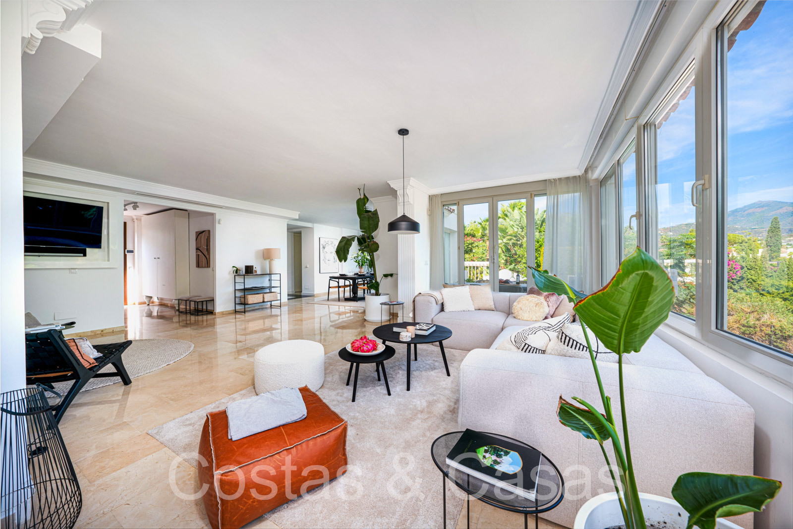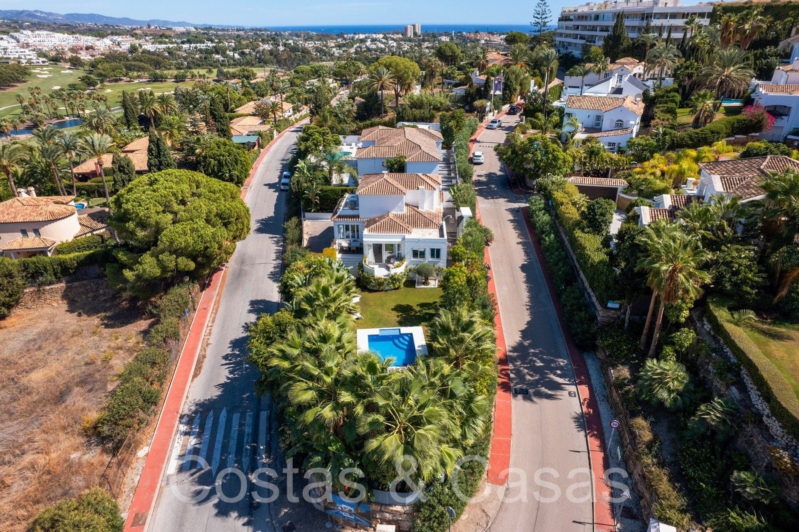 Spacious villa for sale in timeless Spanish style, overlooking Nueva Andalucia's golf valley in Marbella