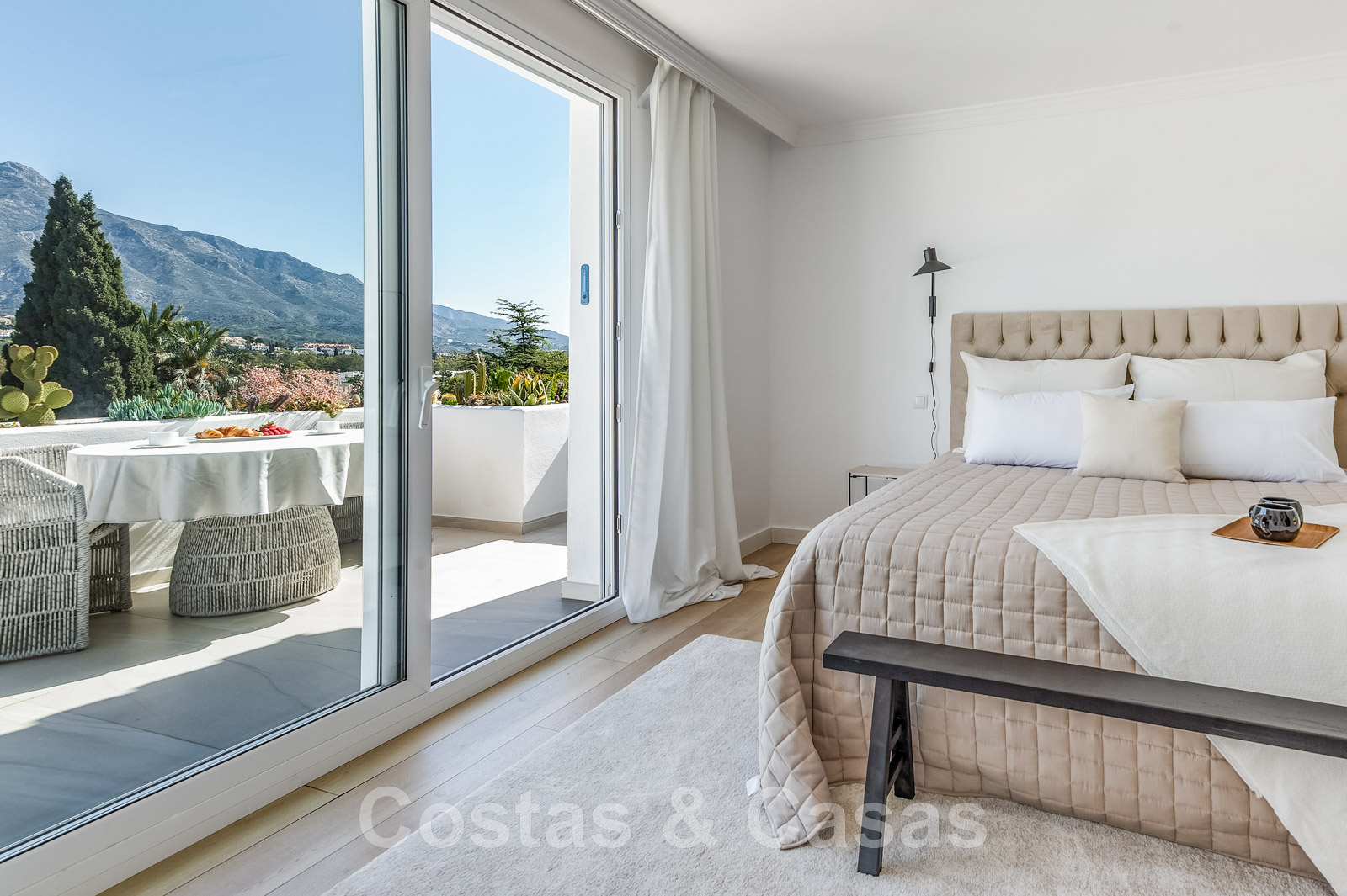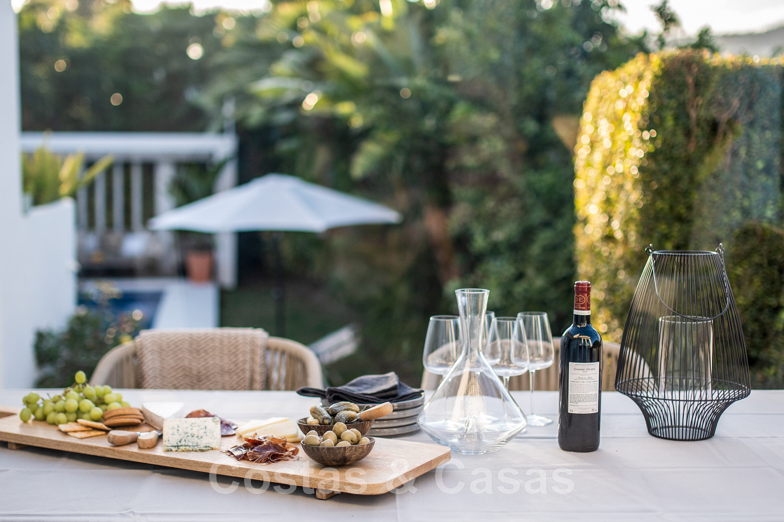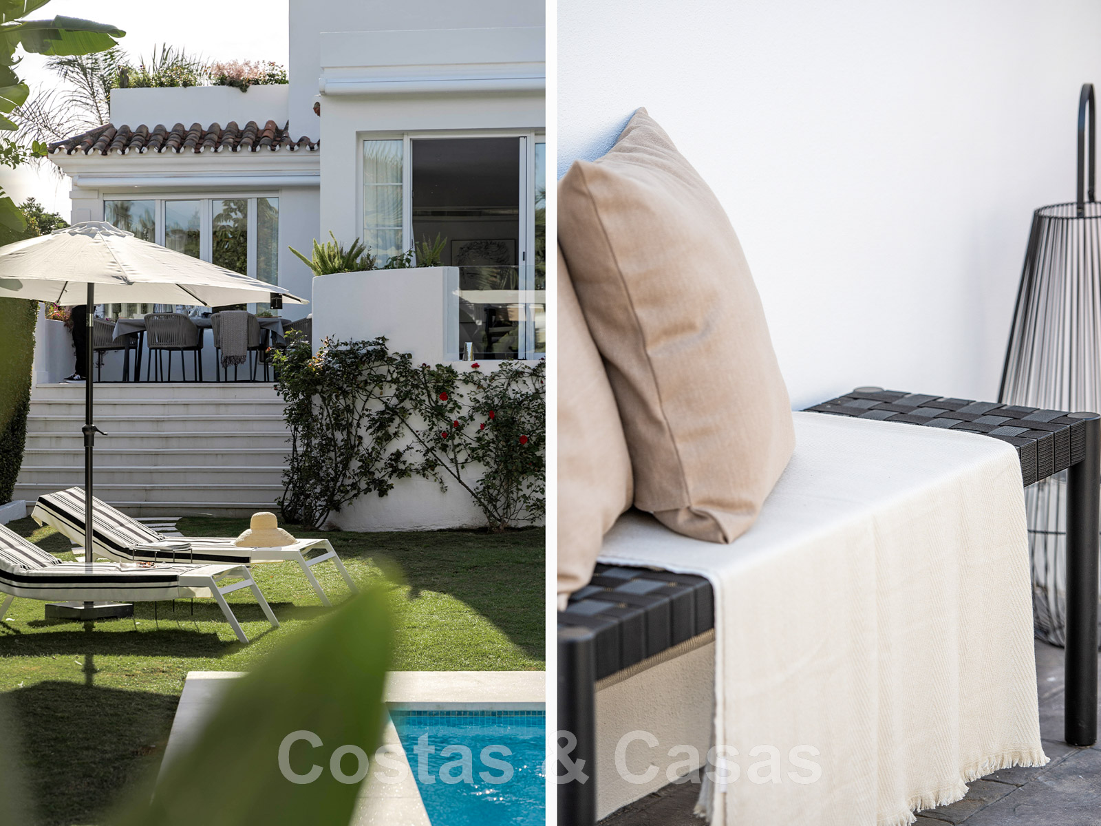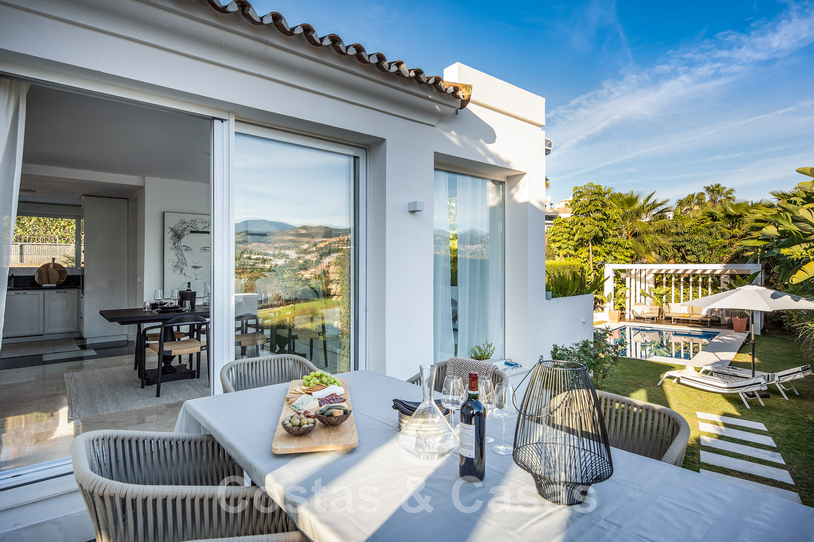 Detached Mediterranean villa for sale within walking distance of amenities overlooking the golf valley and mountain scenery in Nueva Andalucia, Marbella
