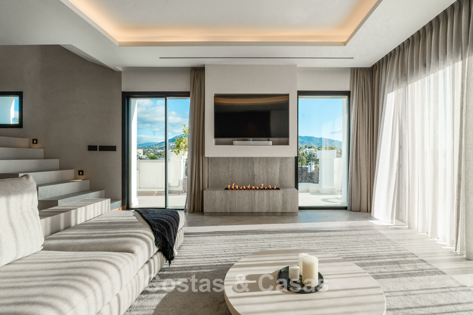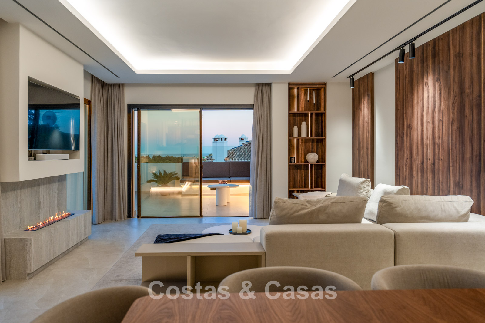 Other features: Air conditioning. Custom woodwork. Modern fireplace. Indoor and outdoor LED lighting. Awnings on the terrace. Custom furnishings.