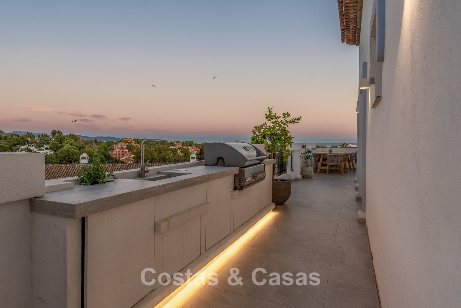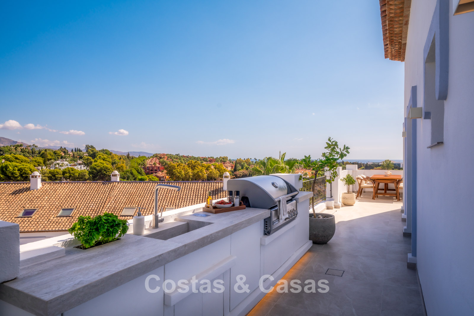 Inviting spacious terrace with outdoor kitchen.
