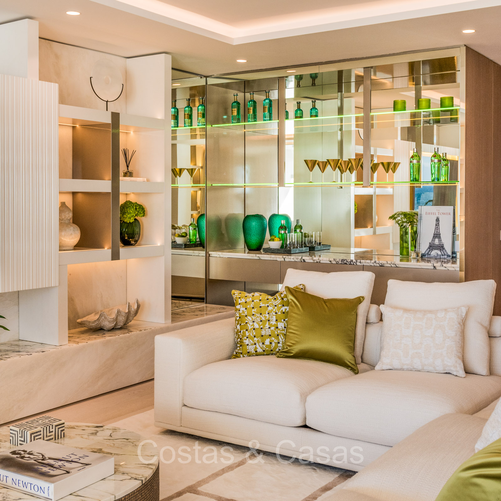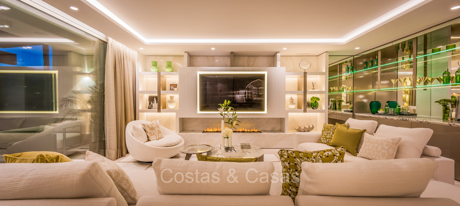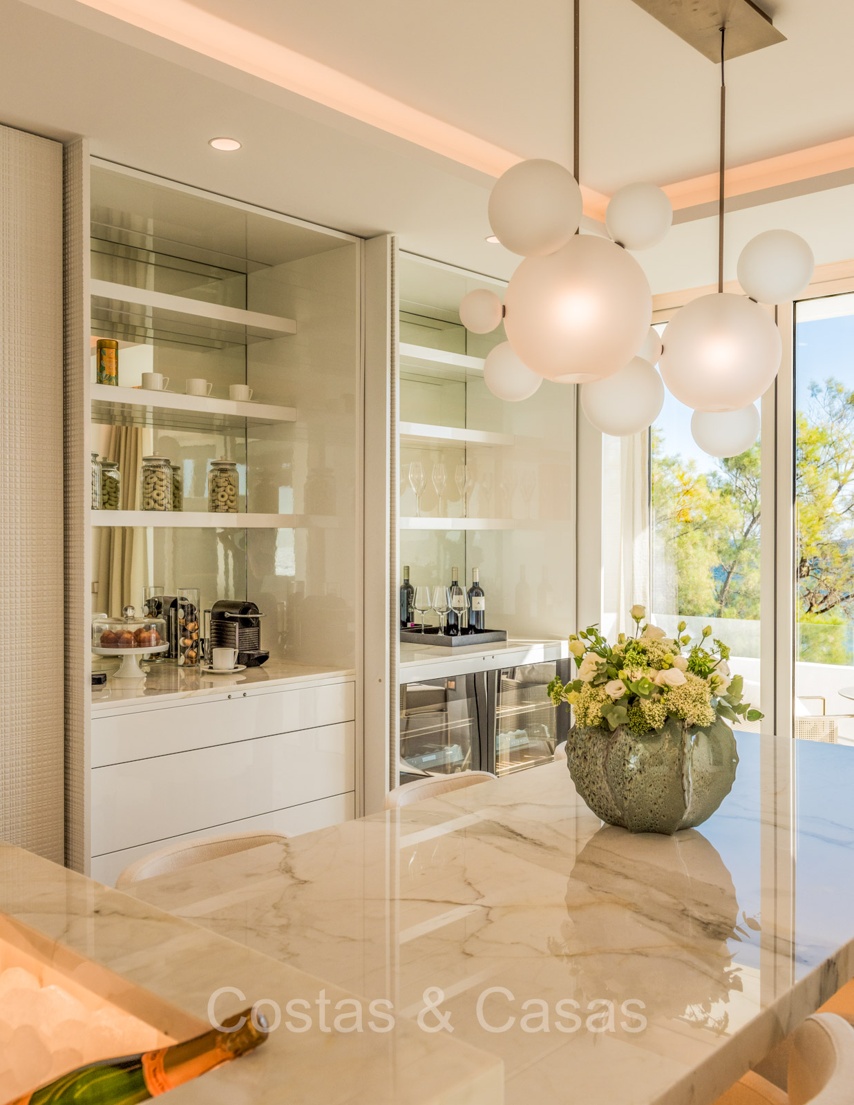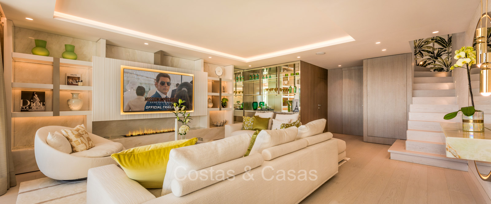 Renovated duplex penthouse with a modern open plan interior layout. Great attention to detail. South facing. Phenomenal, frontal sea views towards the African continent. Inviting outdoor space with a built-in plunge pool, outdoor kitchen and lounge facilities. Floor-to-ceiling sliding windows with recessed frames provide a seamless connection between the interior and exterior. Trendy living room with an ethanol fireplace. Elegant kitchen with a marble cooking island that flows into a lower dining table. 4 bedrooms, 4 bathrooms and separate toilet. The master bedroom, with marble accents in the bathroom and direct access to the terrace, offers a luxurious look. Quality floors.
