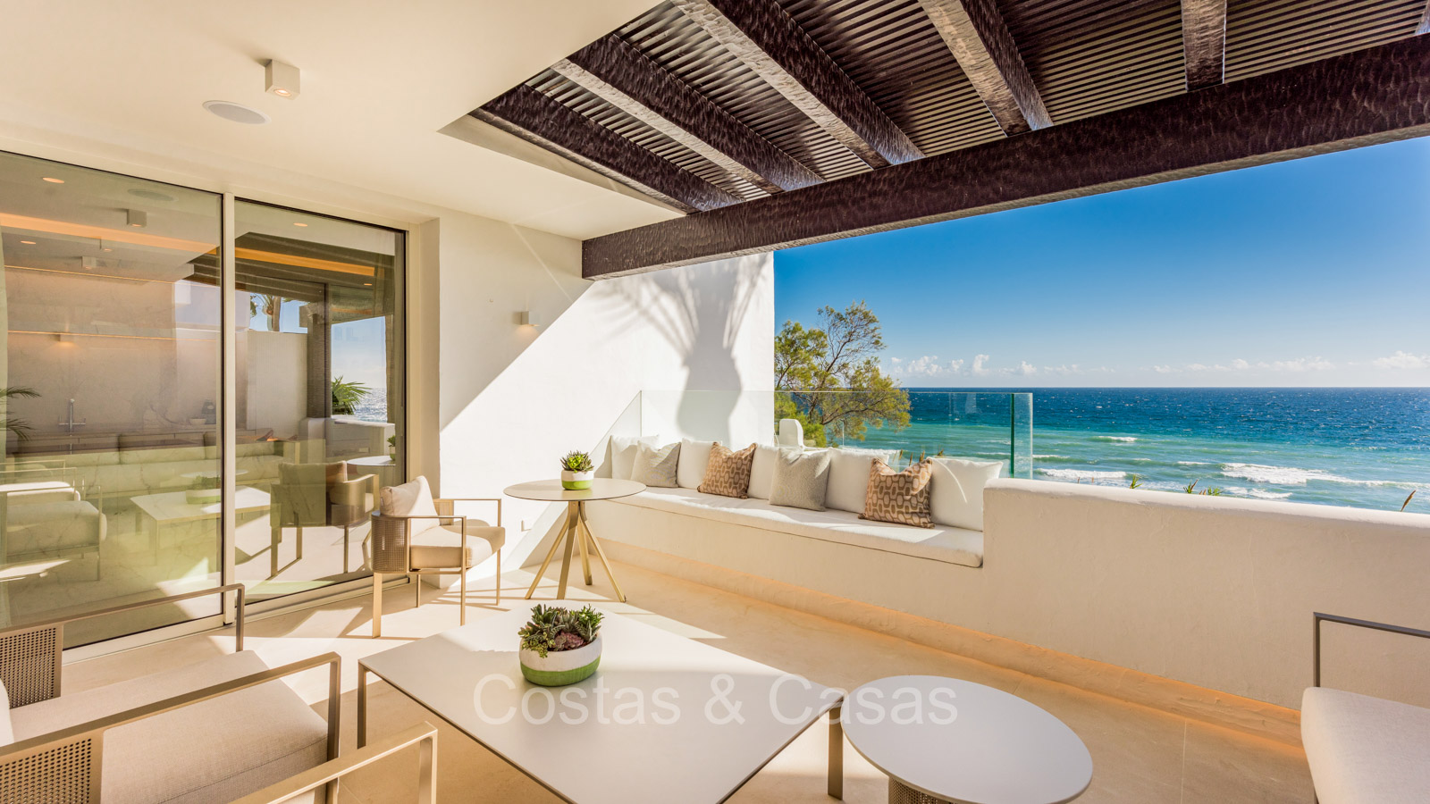 Exclusively located in a frontline beach complex in one of the most prestigious areas of Marbella and the Costa del Sol. Directly adjacent to the acclaimed 5-star hotel and beach resort Puente Romano, you can enjoy all its facilities and services. On the front line of the complex and just a stone's throw from the beach and the stylish promenade of the Golden Mile, with its attractive restaurants, bars and beach clubs. The gold-award winning Marina Puente Romano residential complex itself is set in the midst of beautiful Andalusian, Persian and Japanese themed gardens, each with its own swimming pool. Gated and with permanent security. Situated halfway between Marbella and Puerto Banus. Both within walking distance.