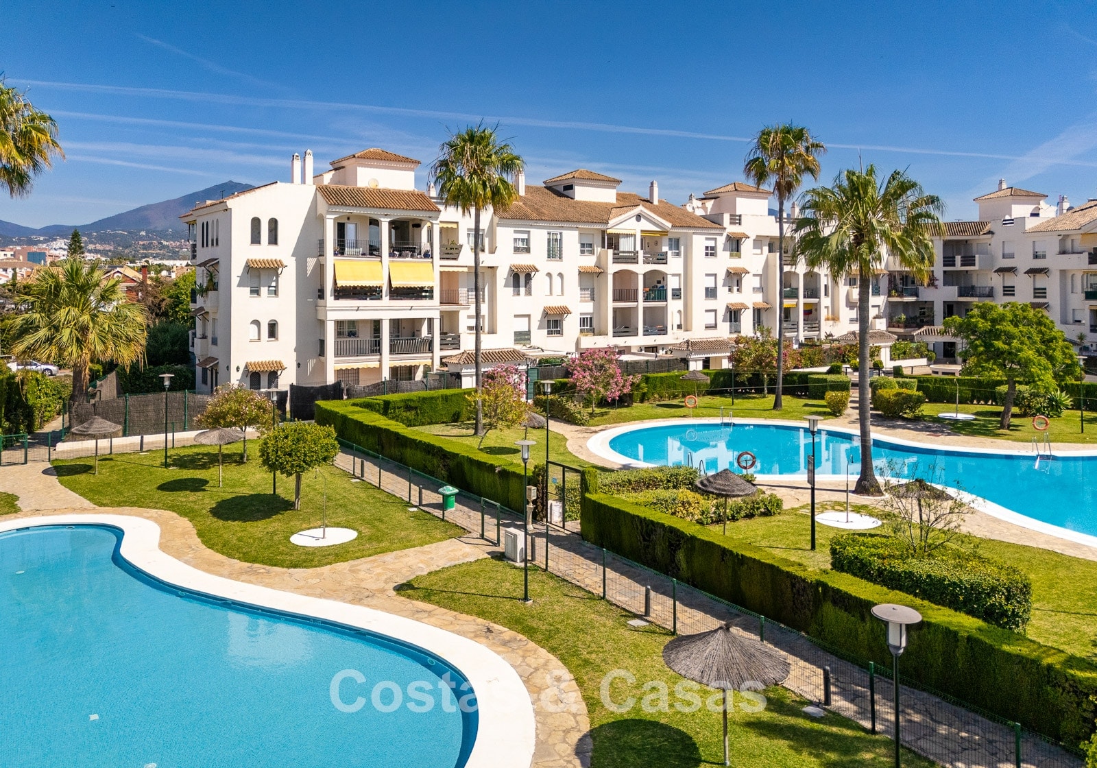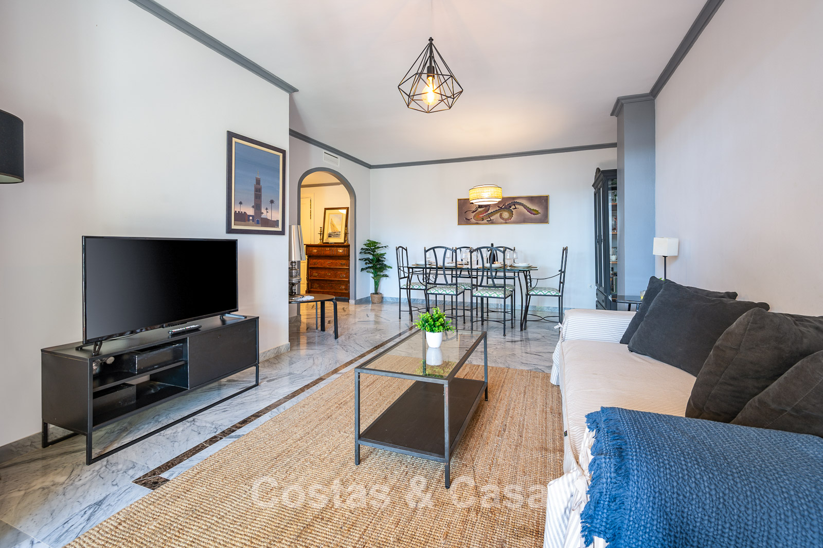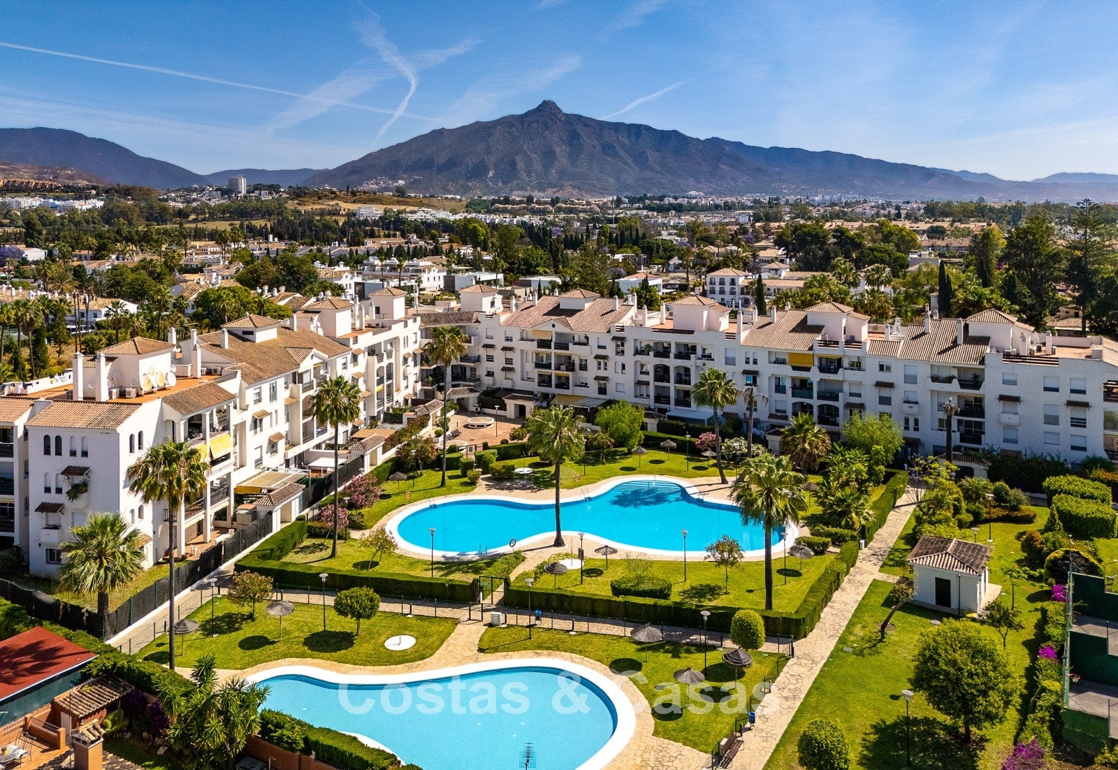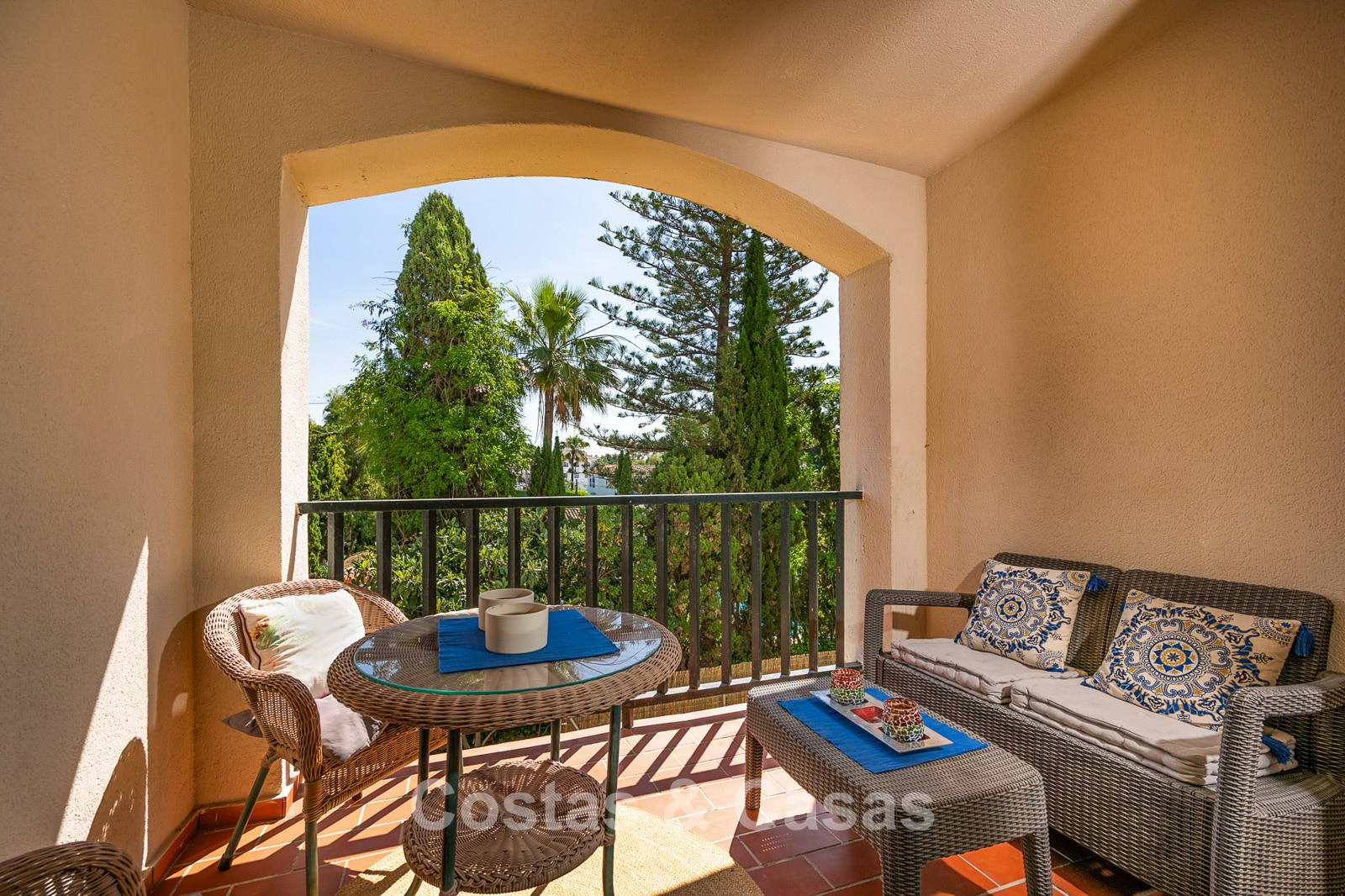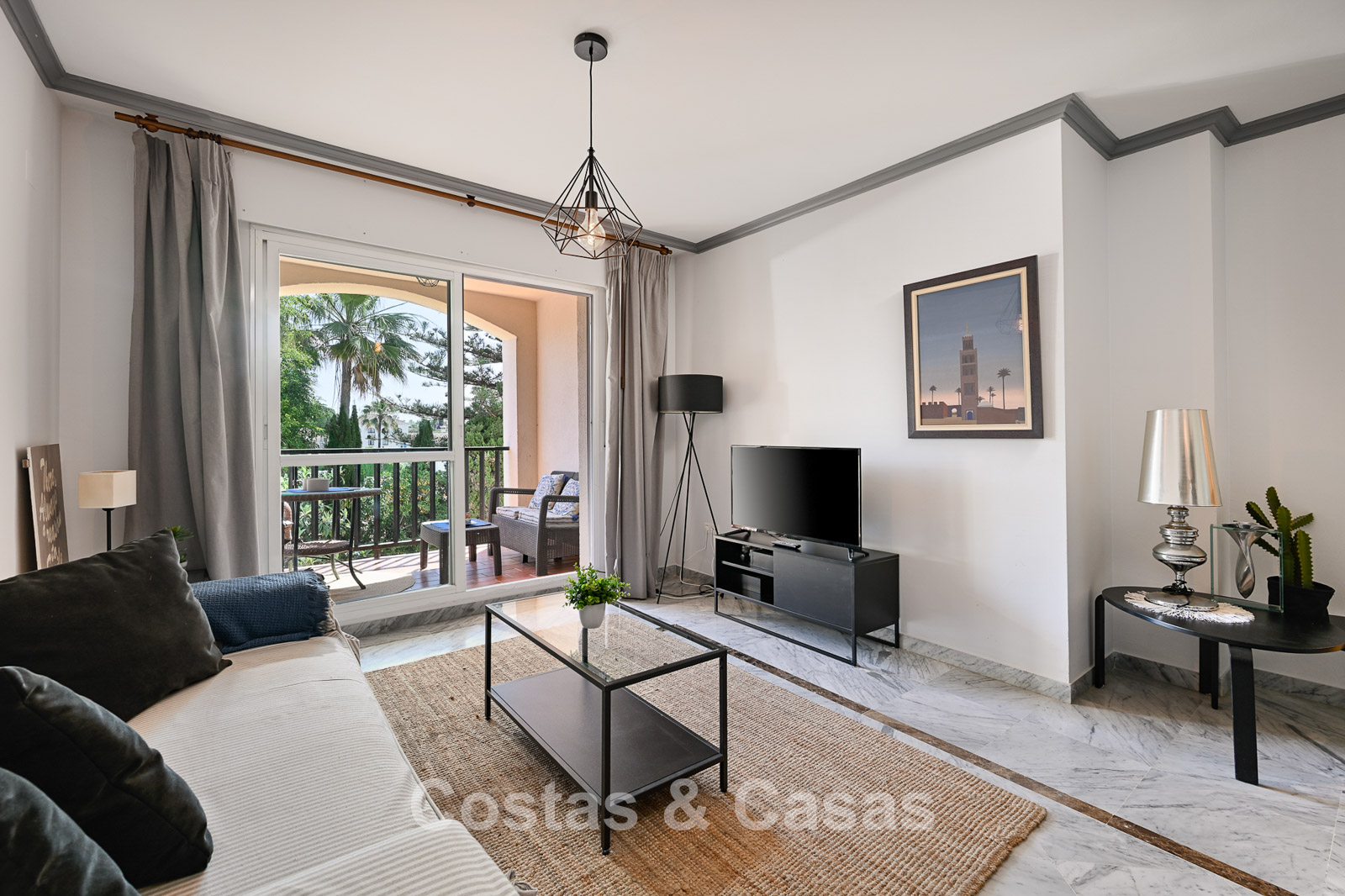 The apartment is in a complex with a typical Andalusian architectural style. Using quality materials and a high-quality finish. East facing. Views of the green surroundings and the La Concha Mountain top. This property has a tourist rental license (VFT), making it immediately suitable for rental and offering an attractive return on investment. A covered terrace is equipped with a lounge and offers the necessary privacy. High sliding windows in the living room provide plenty of natural daylight. Open layout. Spacious living room with a TV lounge and dining area. Separate, practical kitchen with plenty of storage space. 3 bedrooms, 2 bathrooms. Marble floors. Private underground parking.