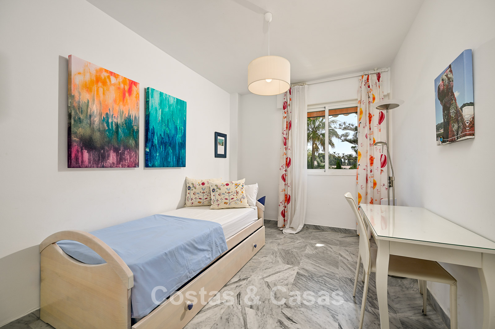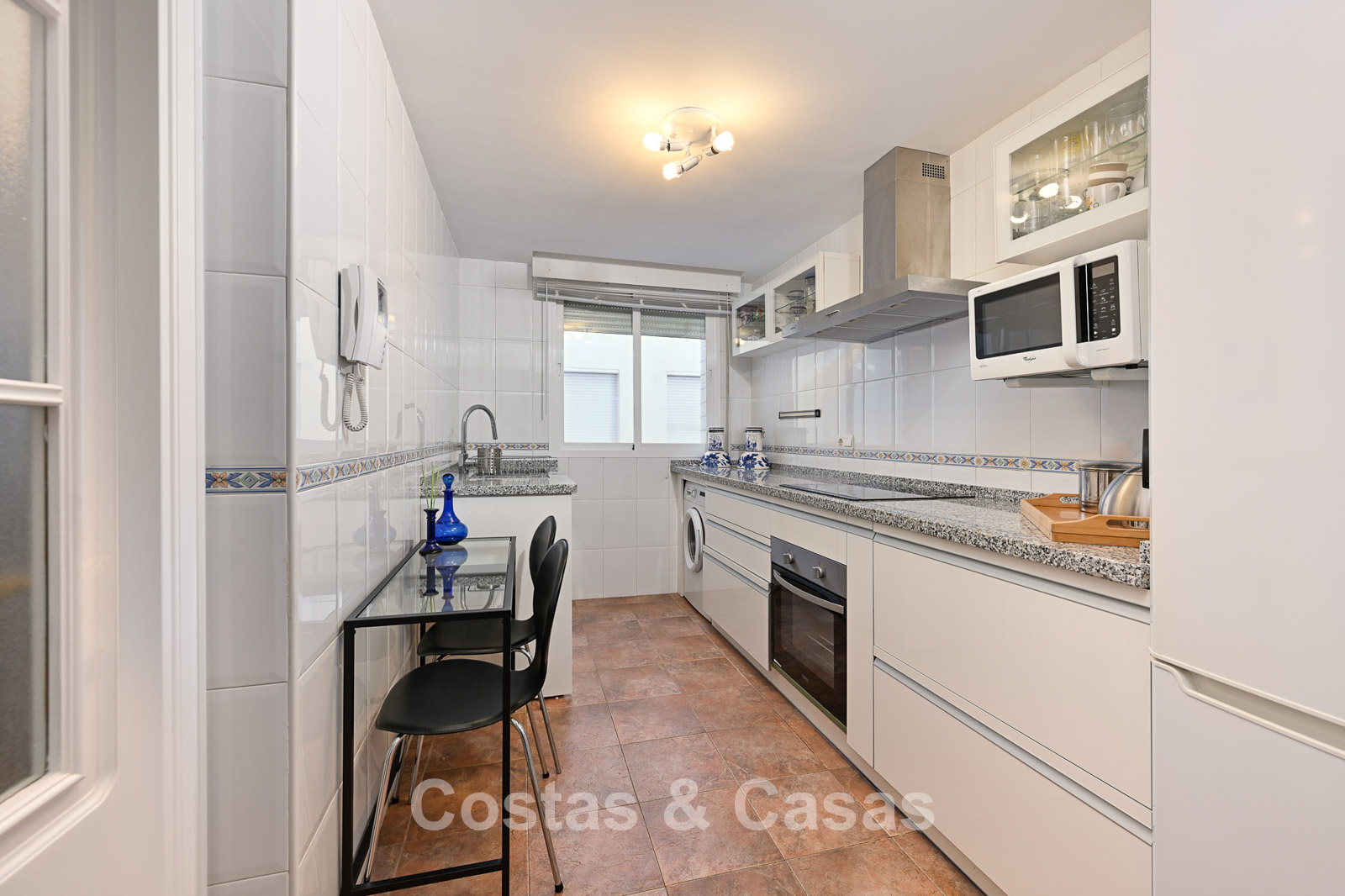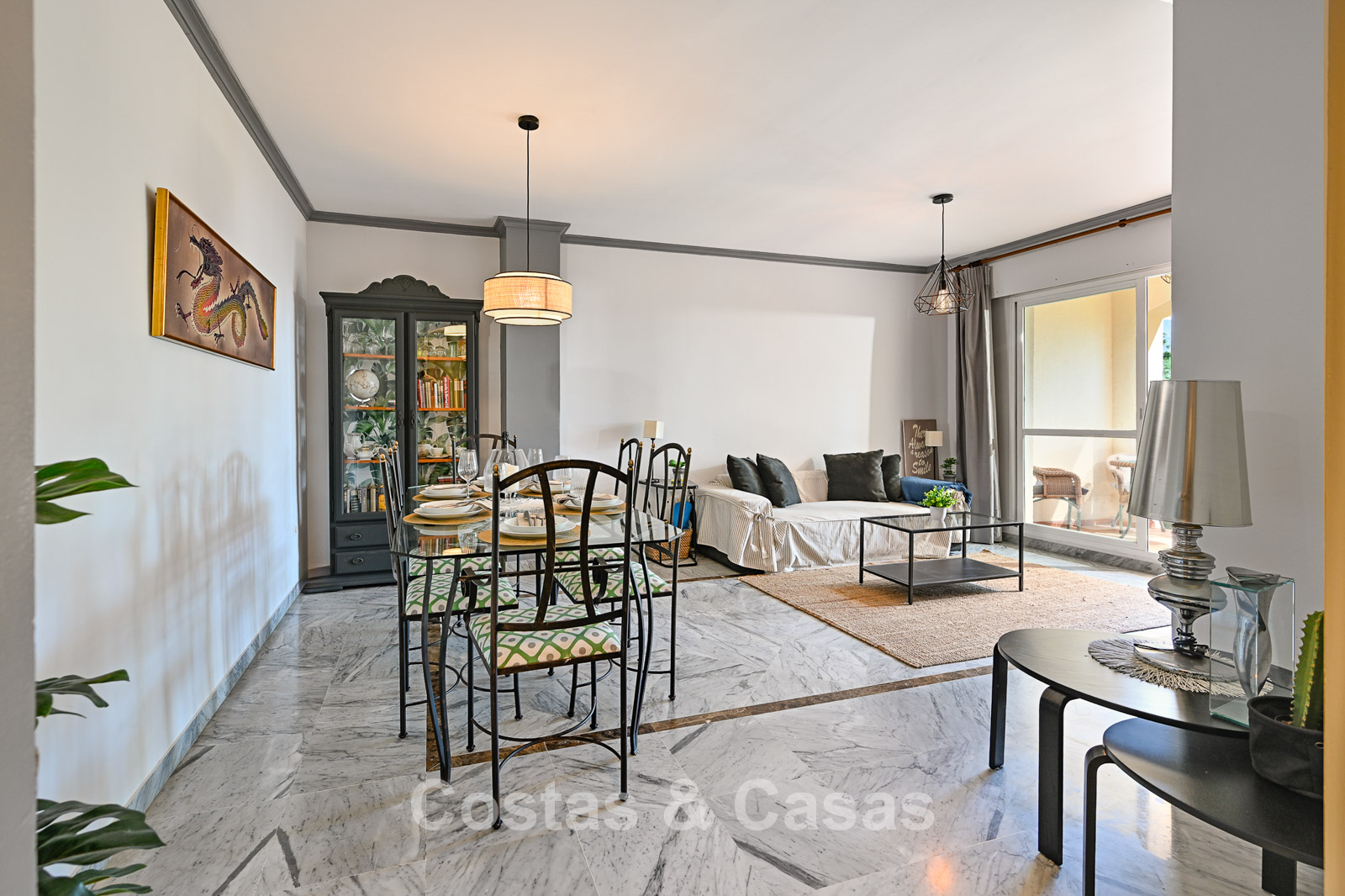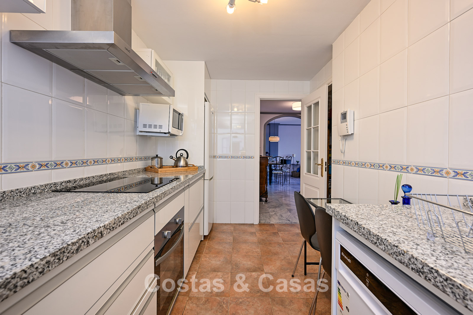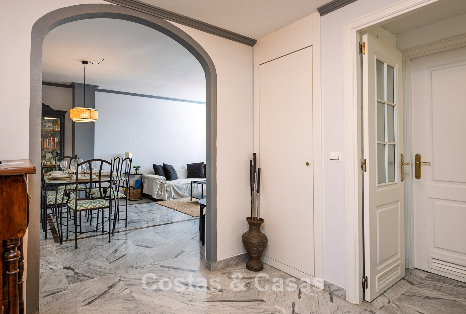 The apartment is in a complex with a typical Andalusian architectural style. Using quality materials and a high-quality finish. East facing. Views of the green surroundings and the La Concha Mountain top. This property has a tourist rental license (VFT), making it immediately suitable for rental and offering an attractive return on investment. A covered terrace is equipped with a lounge and offers the necessary privacy. High sliding windows in the living room provide plenty of natural daylight. Open layout. Spacious living room with a TV lounge and dining area. Separate, practical kitchen with plenty of storage space. 3 bedrooms, 2 bathrooms. Marble floors. Private underground parking.