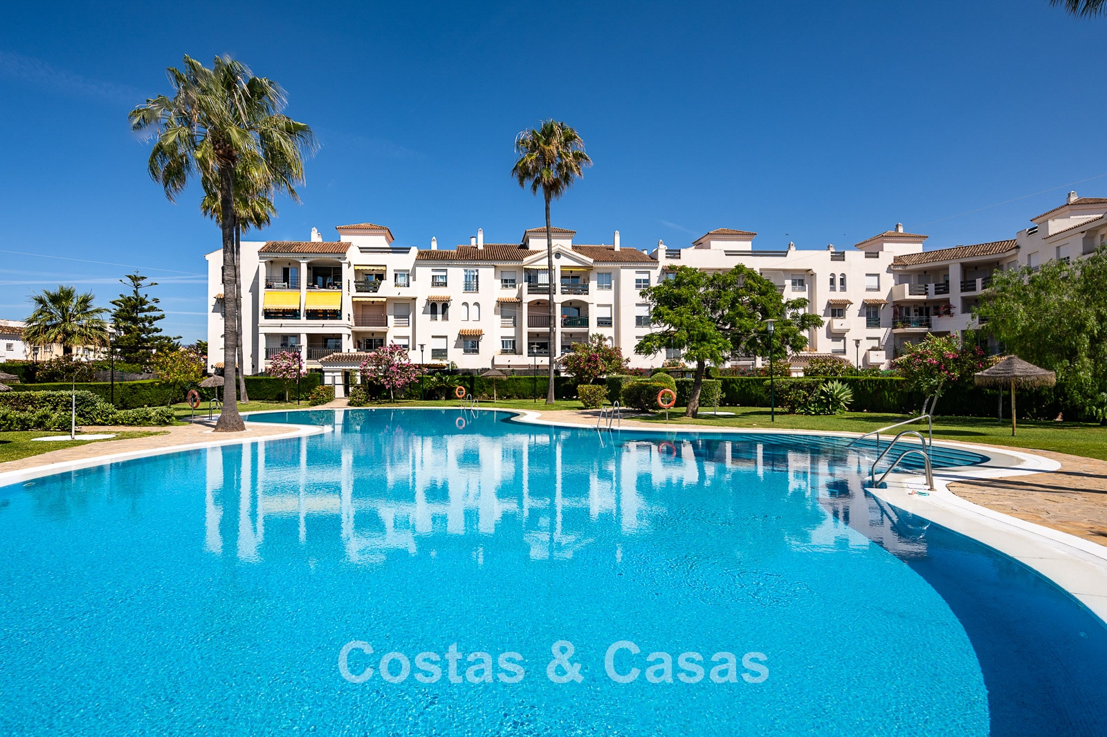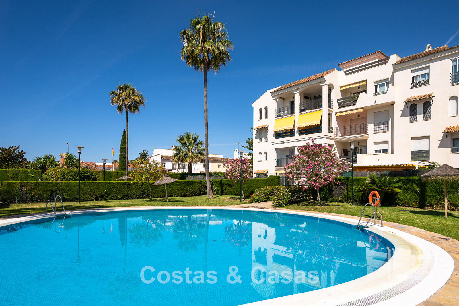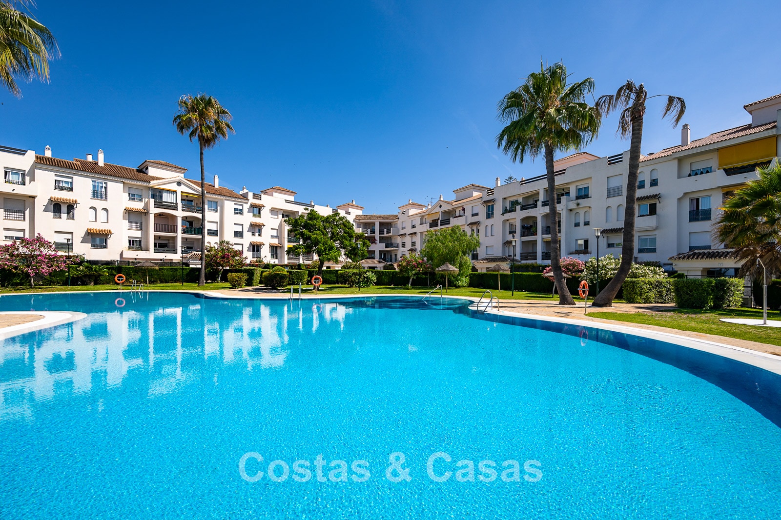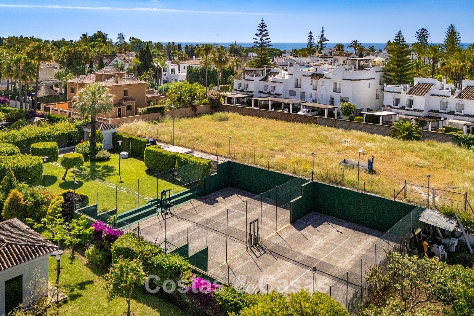 Situated in a sought after gated community in San Pedro, one of the most sought-after areas in Marbella. Just a 350m walk to the beach and the lively promenade of San Pedro. The centre, all amenities, an international school, sports facilities, medical centres and a wide range of restaurants are all within a short walk. Several top-class golf courses can be reached within a few minutes’ drive, including Atalaya, El Paraiso, Guadalmina and Nueva Andalucia’s golf valley. Puerto Banus and Marbella centre are approximately 5 and 10 minutes away by car. The complex offers 24-hour security, 2 swimming pools and 2 paddle courts.