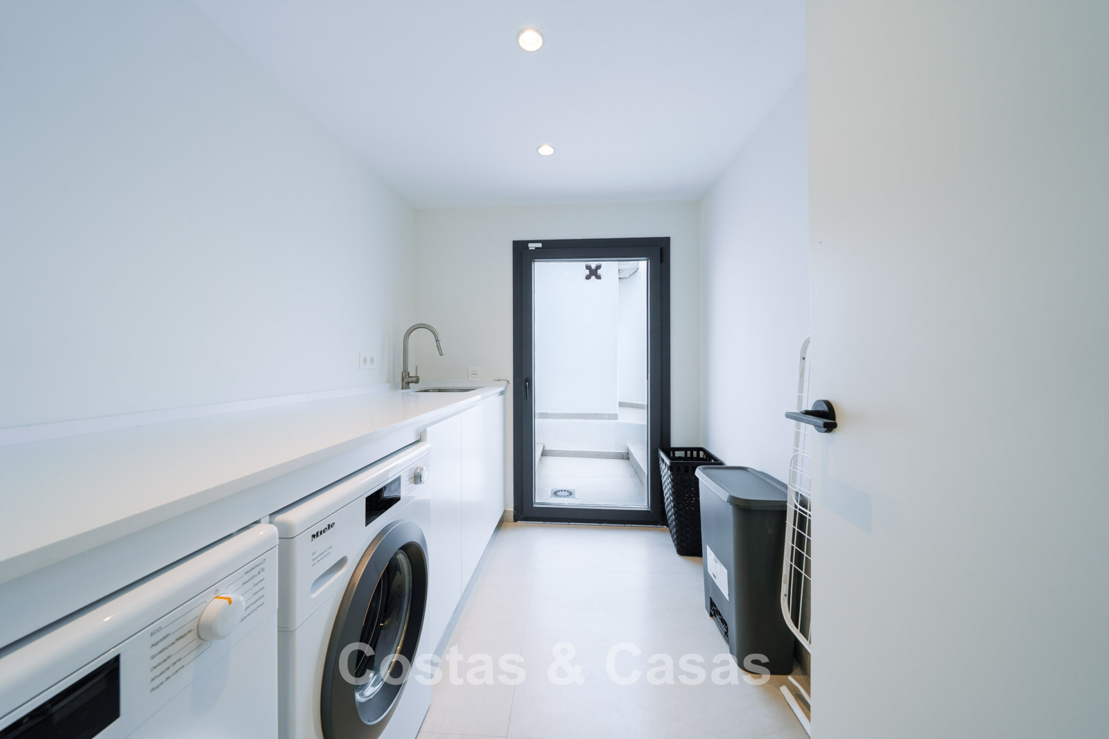Located in a residential neighbourhood just a stone’s throw from the golf course and a 10-minute walk from the beach. All daily amenities such as medical centres, schools, supermarkets, restaurants, bars and a bus stop are within easy reach. Puerto Banús, an internationally renowned hotspot with designer boutiques and a vibrant marina, is just a five-minute drive away. Puerto Banús is also easily accessible on foot or by bike via the beachfront promenade.