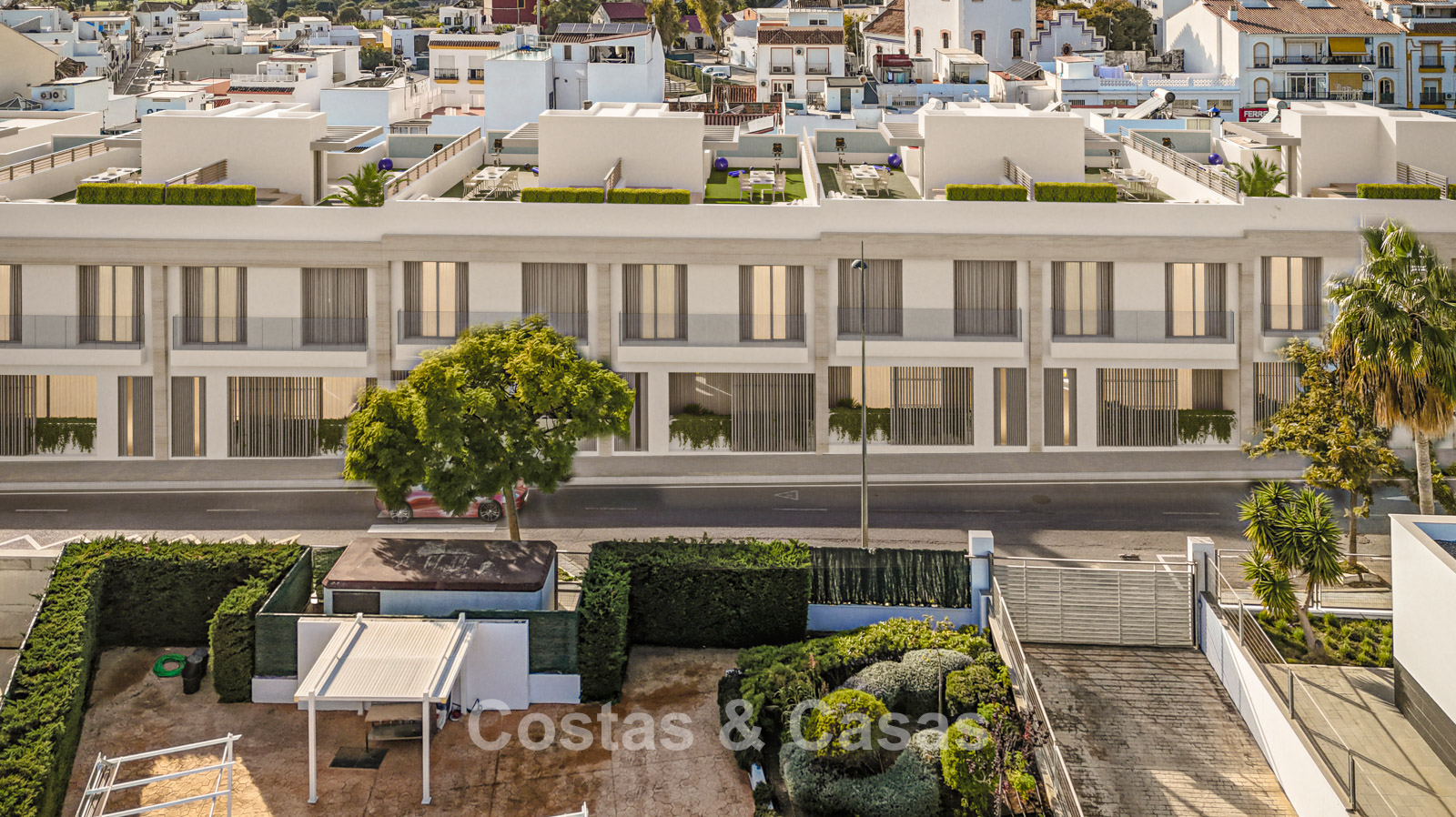 Off-plan new-build townhouses for sale, with all amenities within walking distance, beachside in San Pedro, Marbella