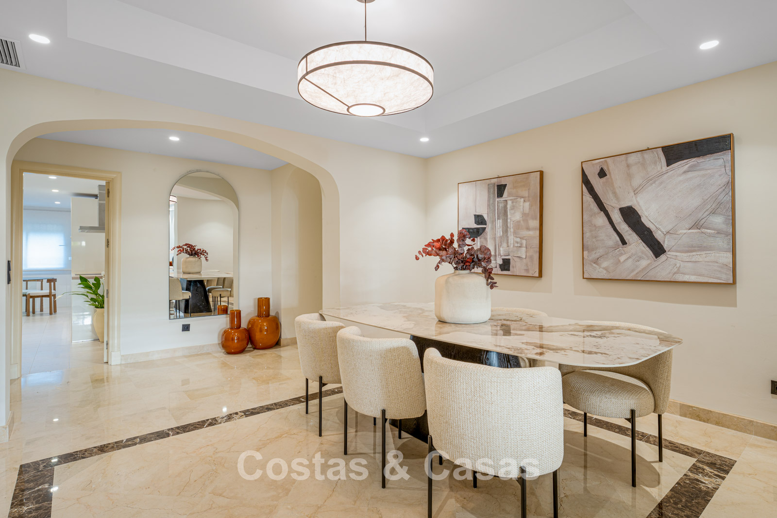 Peacefully and exclusively situated in a prestigious, 24-hour secured urbanisation in Sierra Blanca, at the foot of the majestic La Concha. Just a few minutes’ drive away are the vibrant centre of Marbella, the iconic marina Puerto Banús and the extensive sandy beaches of the Golden Mile. In the immediate vicinity you will find daily amenities including a supermarket, charming restaurants, elegant cafés, various sports and leisure facilities, a large park and an international school. Residents also enjoy a beautiful communal swimming pool set within lush, perfectly maintained Mediterranean gardens that create an exclusive and relaxing atmosphere.