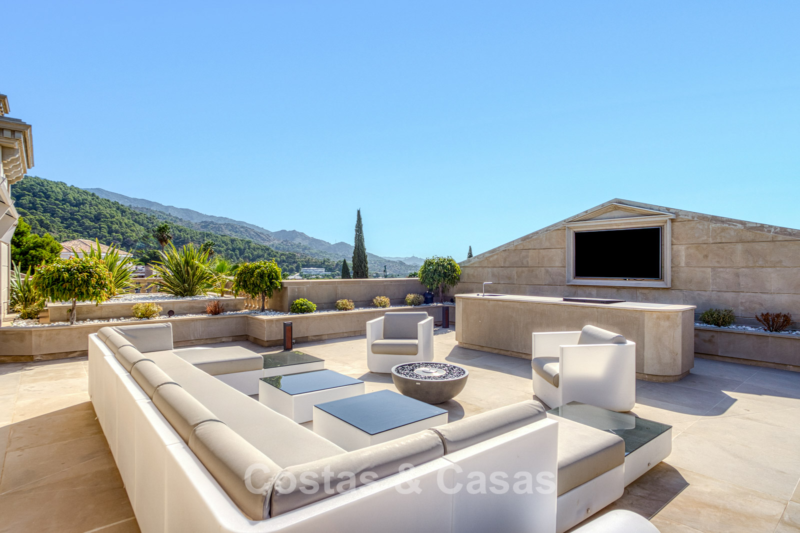 Other features: Private elevator. Water-based underfloor heating. Fireplace. (More than one) Advanced home automation system. Double glazing. Glass balustrades around the terraces. Large natural stone floors. Custom built-in wardrobes. LED lighting inside and out.