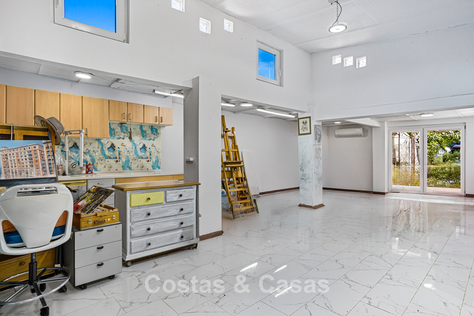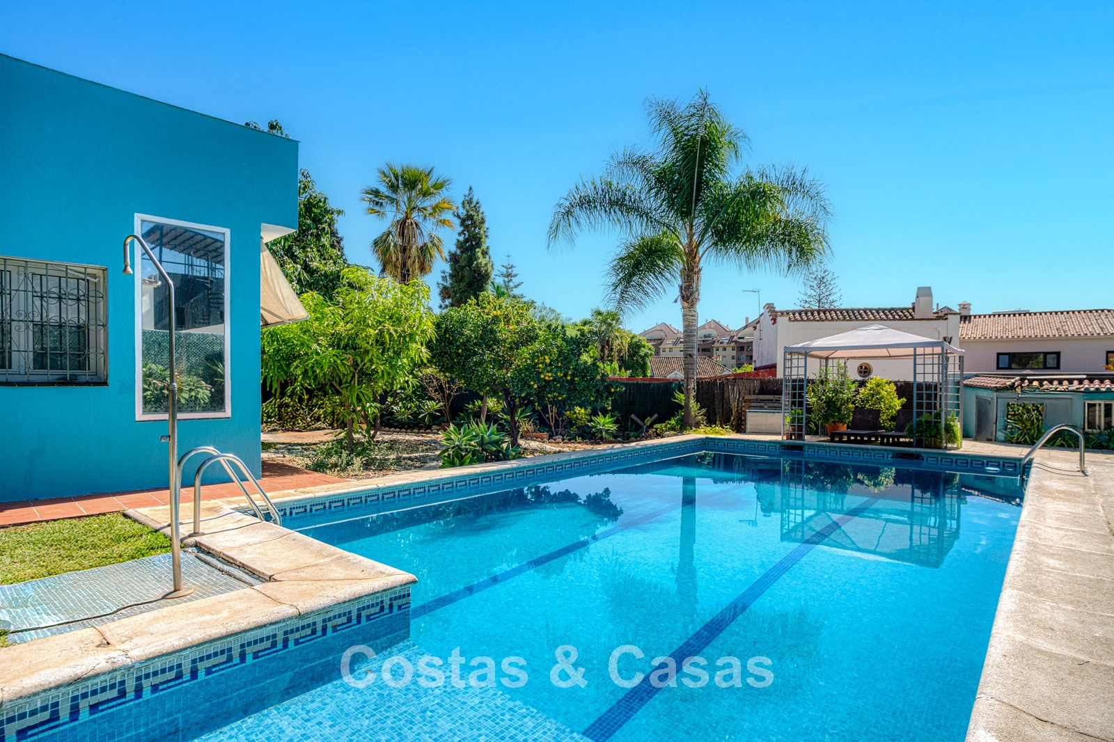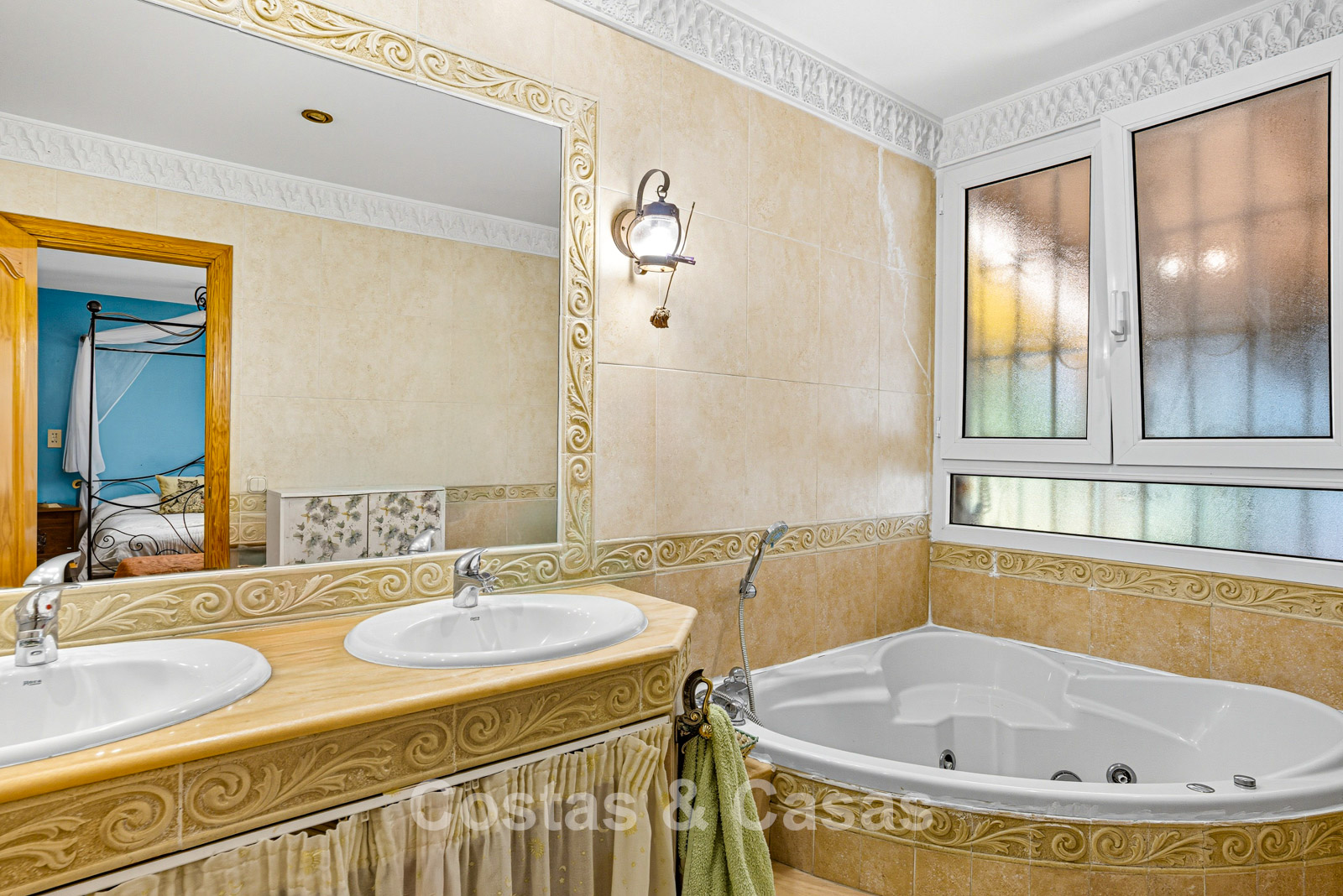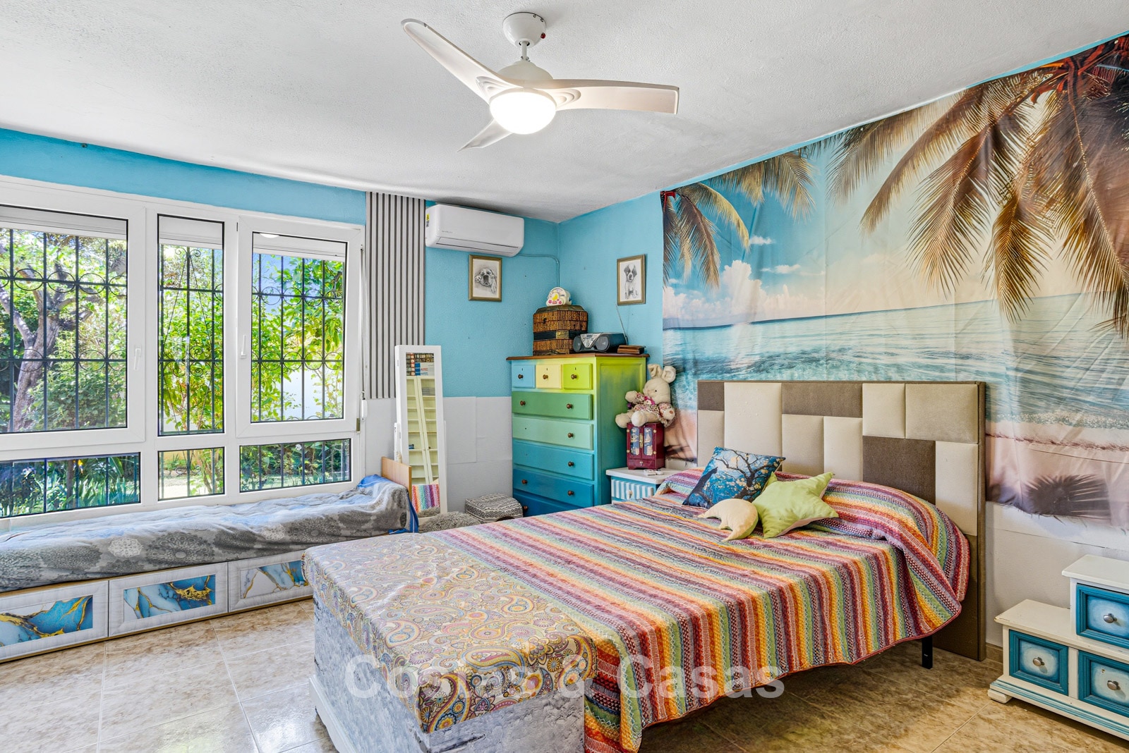 Single-story, detached house with a charming Mediterranean architectural style. The interior is artistically and creatively decorated. TV lounge with adjoining dining room. Separate, fully equipped kitchen. 5 bedrooms, 3 bathrooms. Independent guest house with its own kitchen and bathroom. Laundry room. Parking for 2 cars on the property.