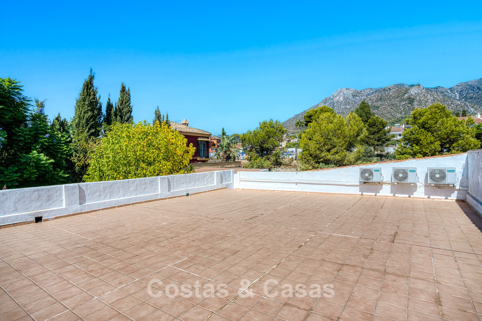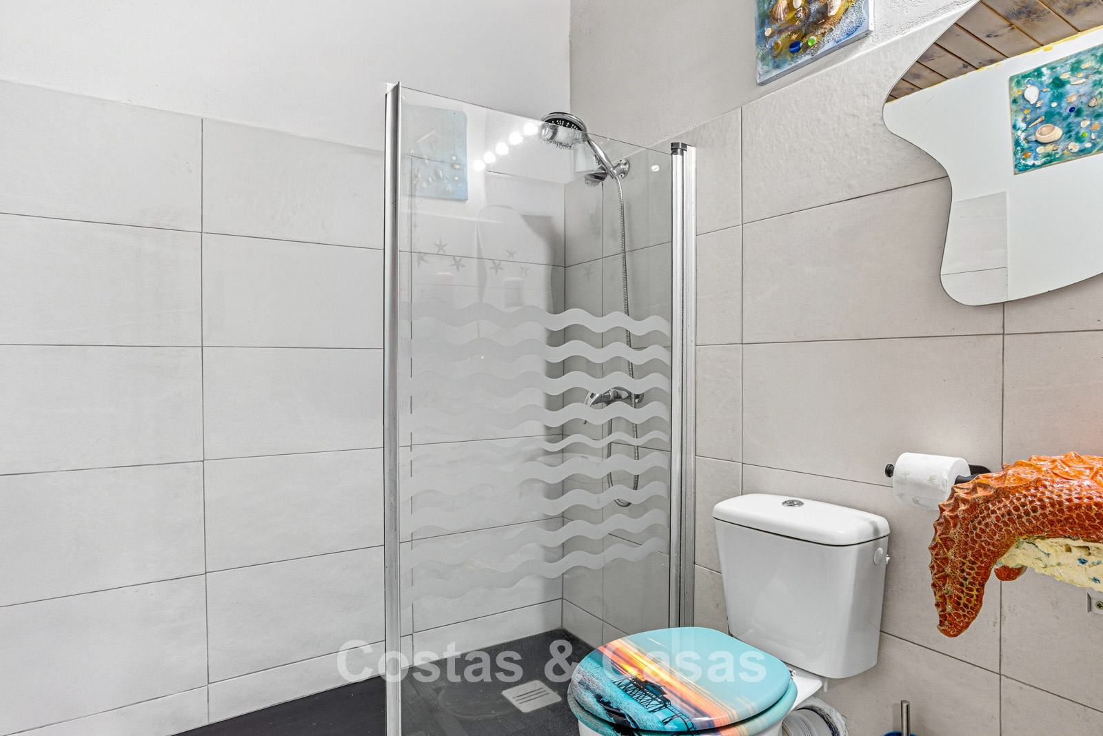 Situated on a flat, fully fenced plot. A cozy exterior with lush plantings, fruit trees, charming nooks, mosaic patios, and a barbecue area for relaxing outdoor moments. Indoor private pool. Extensive roof terrace with the option for lounge areas or a second-floor extension. Southwest-facing. Fantastic views of La Concha Mountain.