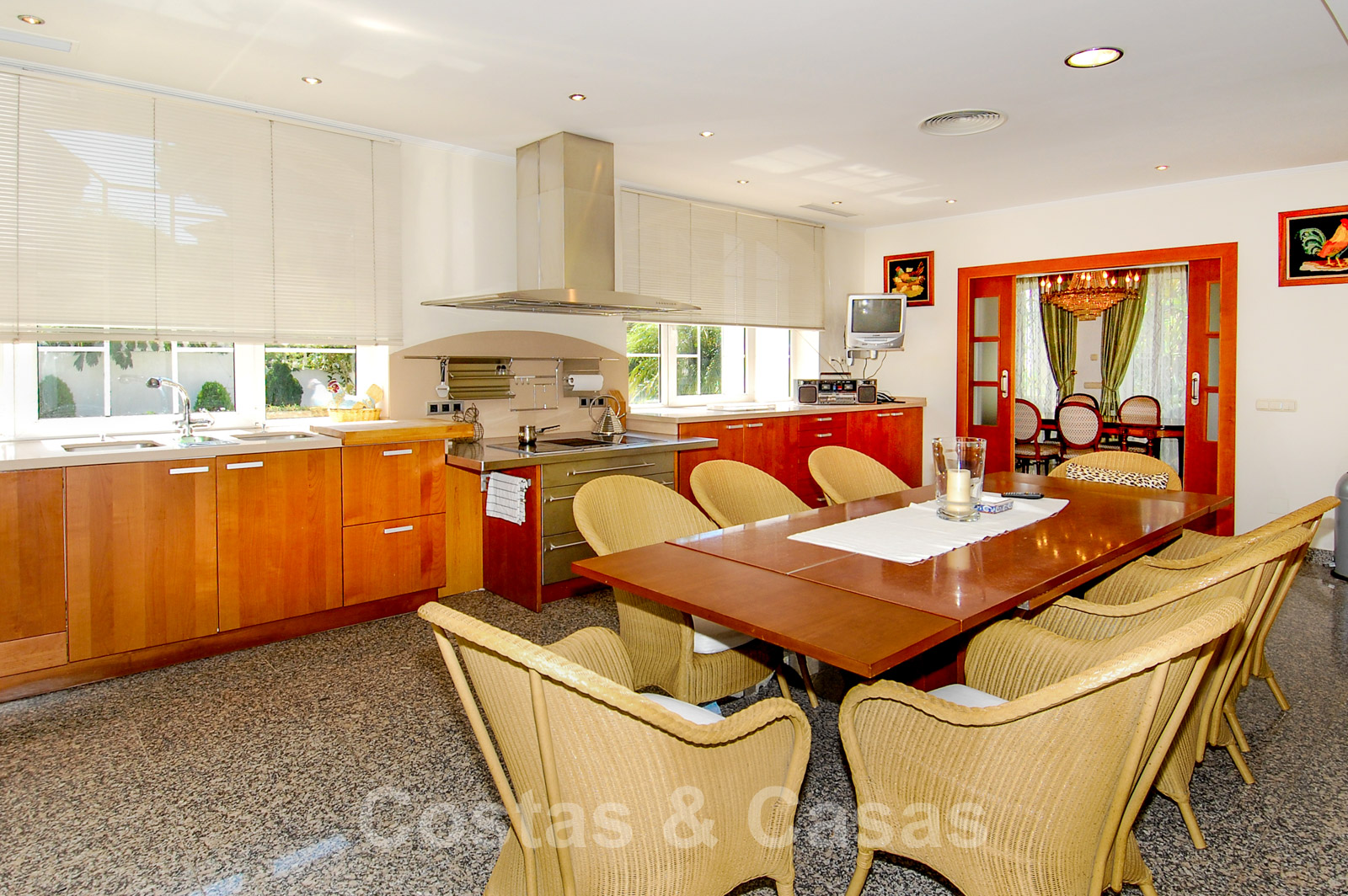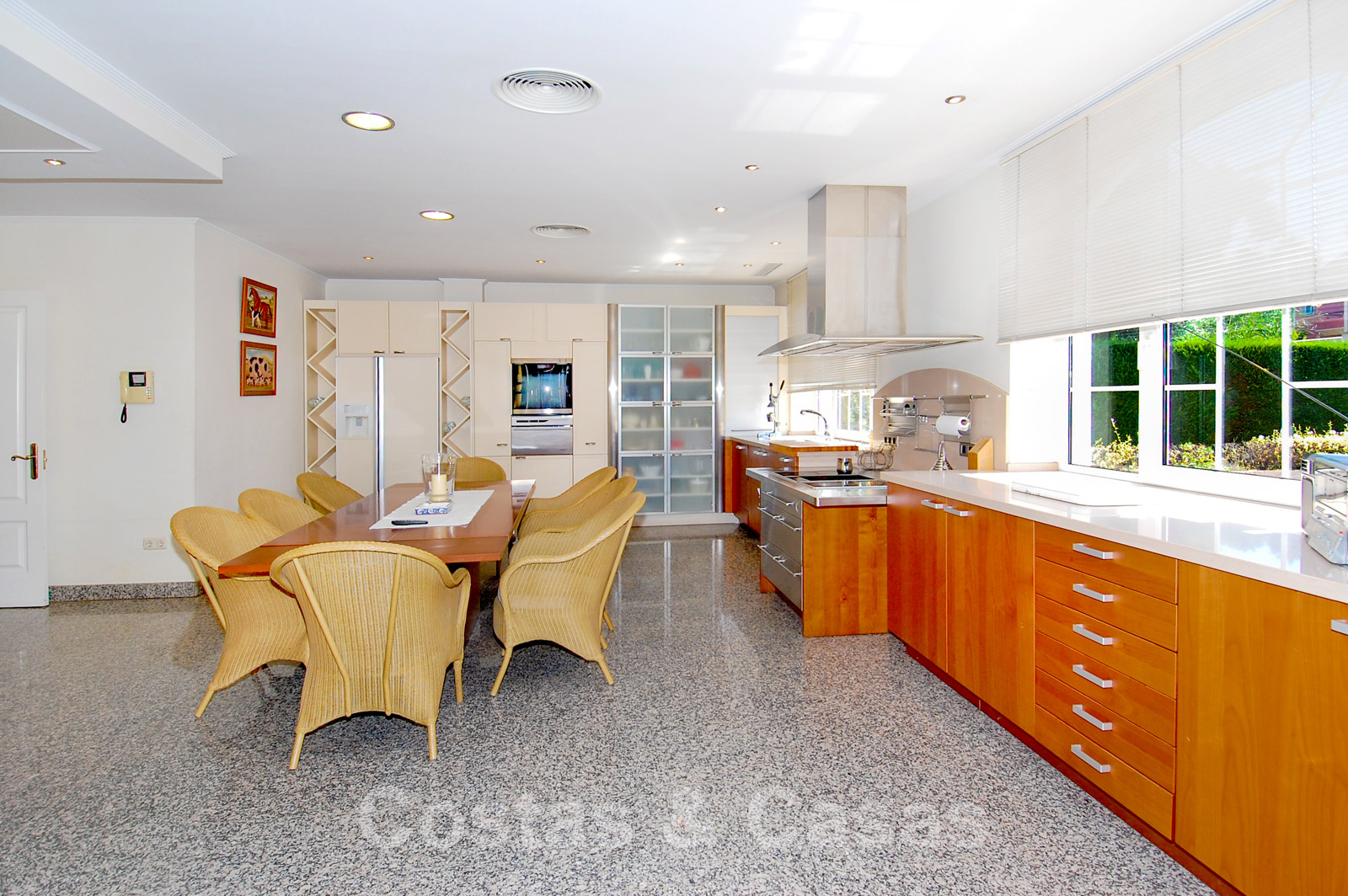 Fully fitted kitchen with Gaggenau, Neff and Siemens appliances with a breakfast area and direct exit to the separate dining-room.