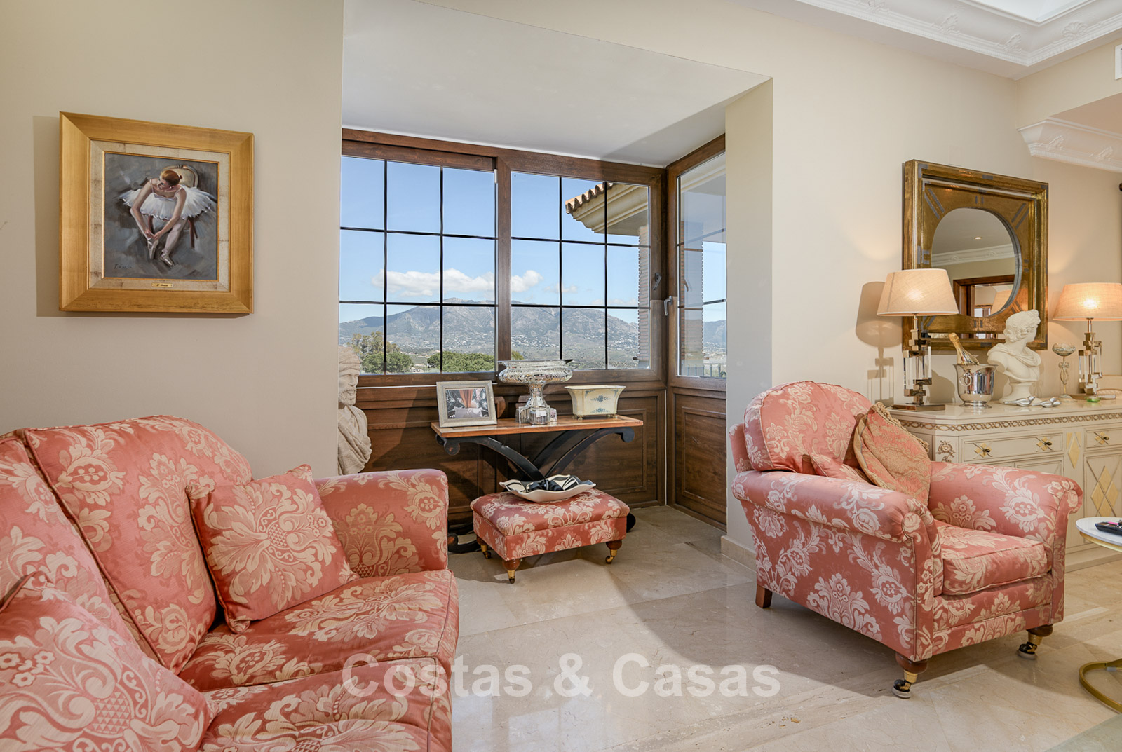 Additional features: Air conditioning (hot & cold) Underfloor heating throughout Fireplace High-quality marble flooring Fitted wardrobes Double glazing Alarm system and video intercom Automatic garden irrigation system LED lighting Optional furniture negotiable